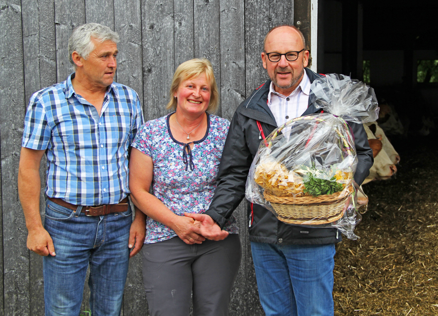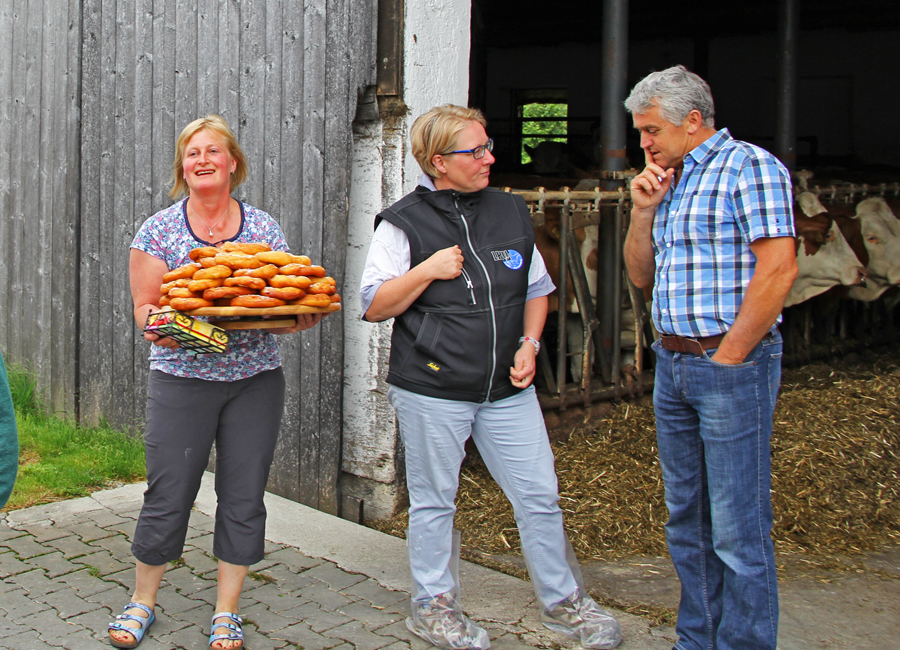 Betriebsbesuch bei Kaindl Peter in Windach. AMS-Betrieb, 88 Kühe, 8.800 kg Milch. Frau Kaindl hat uns mit ofenfrischem