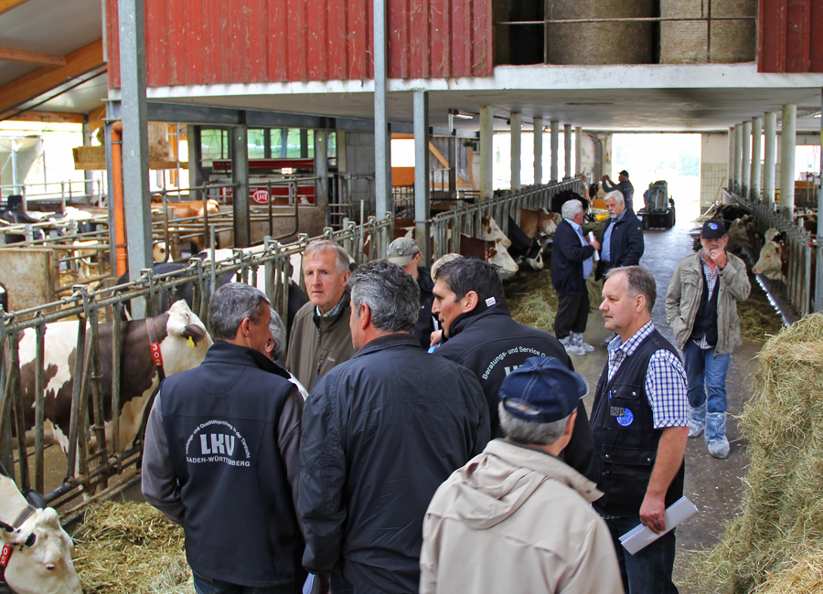 Betriebsbesuch bei Kaindl Peter in Windach. AMS-Betrieb, 88 Kühe, 8.800 kg Milch. Rechts der LKV Berater
