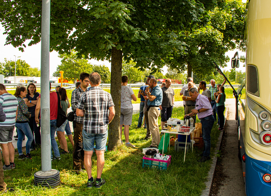 Nachdem alle Teilnehmer an der Exkursion zugestiegen sind, gab es ein gemeinsames Frühstück an einer Raststätte