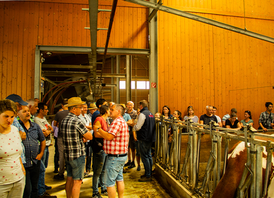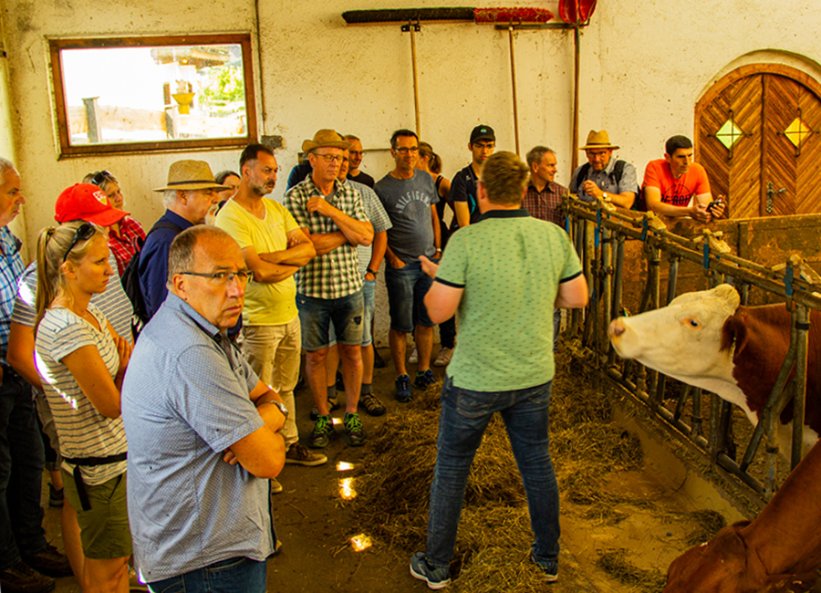 Erste Station am Freitag 19.07.2019 in Oberndorf: Besichtigung des Milchviehbetriebes Stefan Lindner mit Smartbow Überwachungssystem und Käserei