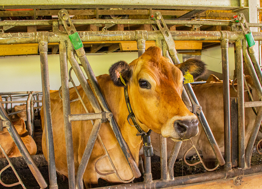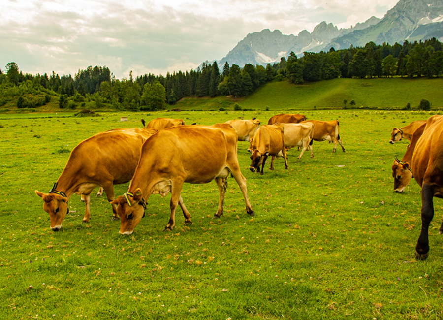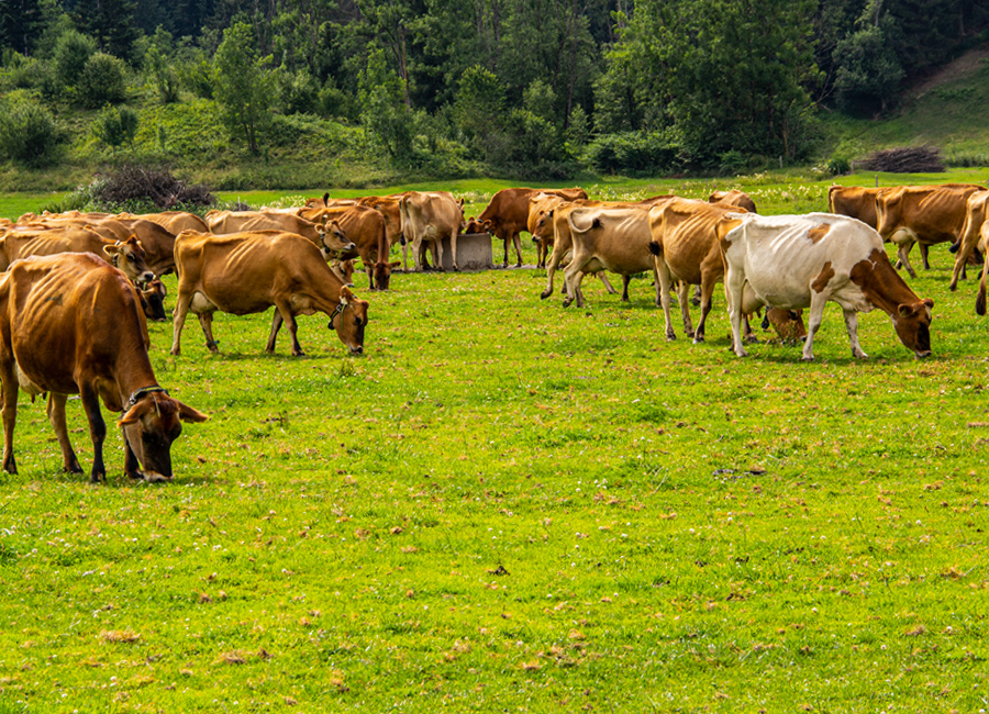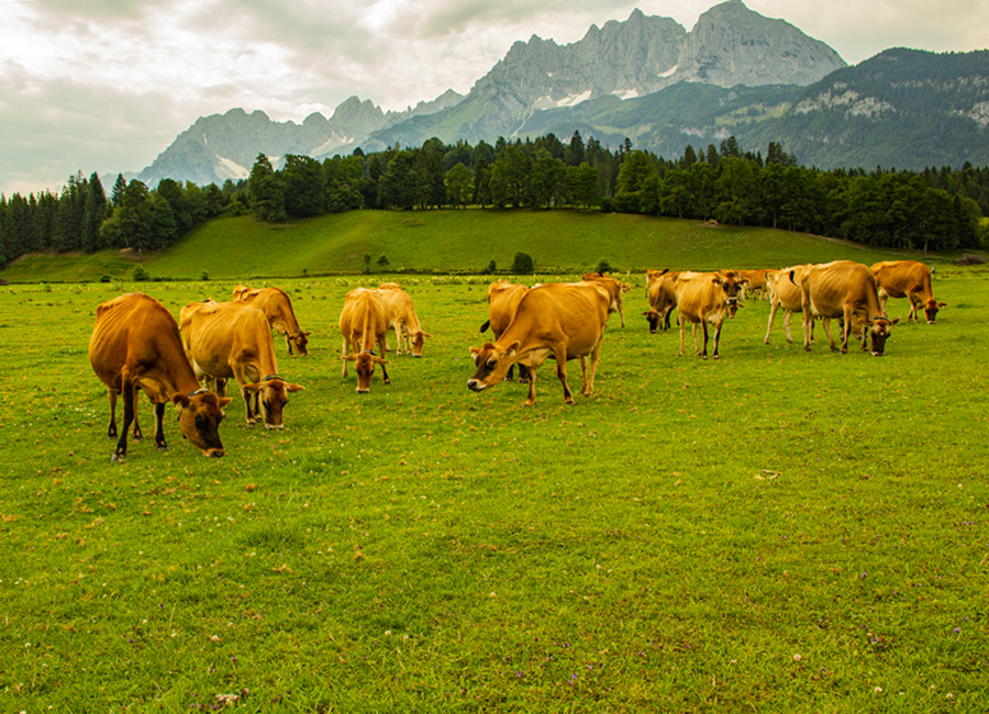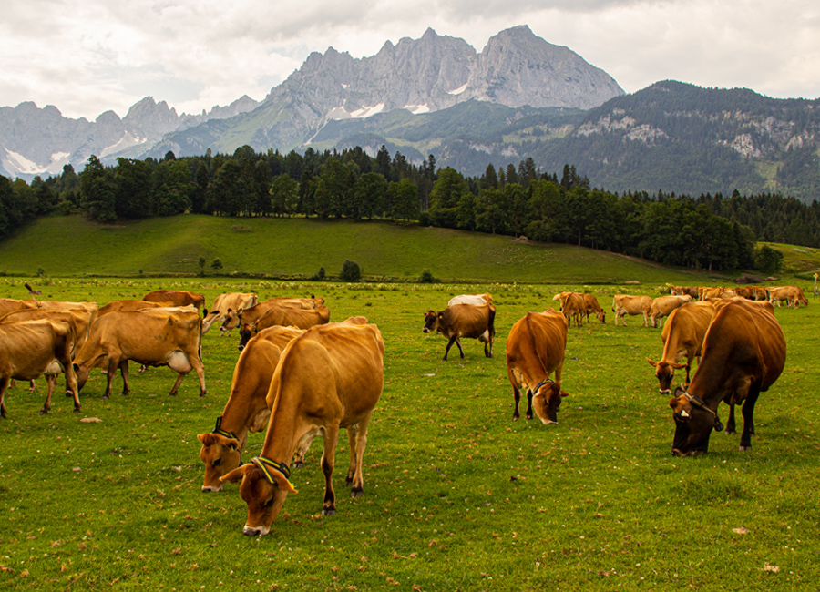 Dritte Station am Freitag 19.07.2019 zwischen Oberndorf und St. Johann: Besichtigung eines Jerseybetriebes mit Kurzrasenweide, saisonale Abkalbung und Heatime Überwachung