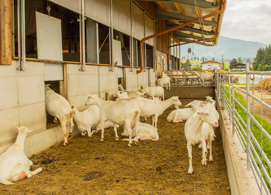 Zweite Station am Freitag 19.07.2019 in Oberndorf: Besichtigung eines Milchziegenbetriebes mit 240 Tieren in einem neuen Stall mit Swingover-Melkstand